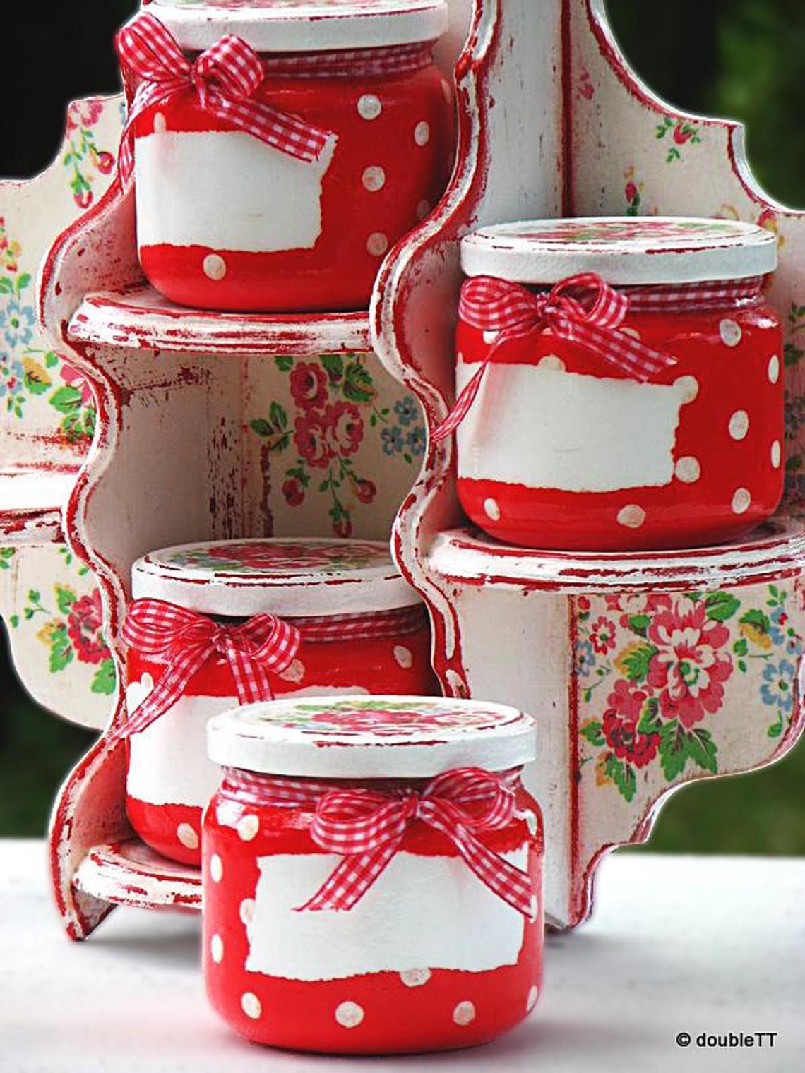Morala sam se vratiti na ovaj post i još jednom guštati u prekrasnom spoju točkica i ruža, diviti se predivnoj stalažici i maštati što bih stavila u staklenke 😀